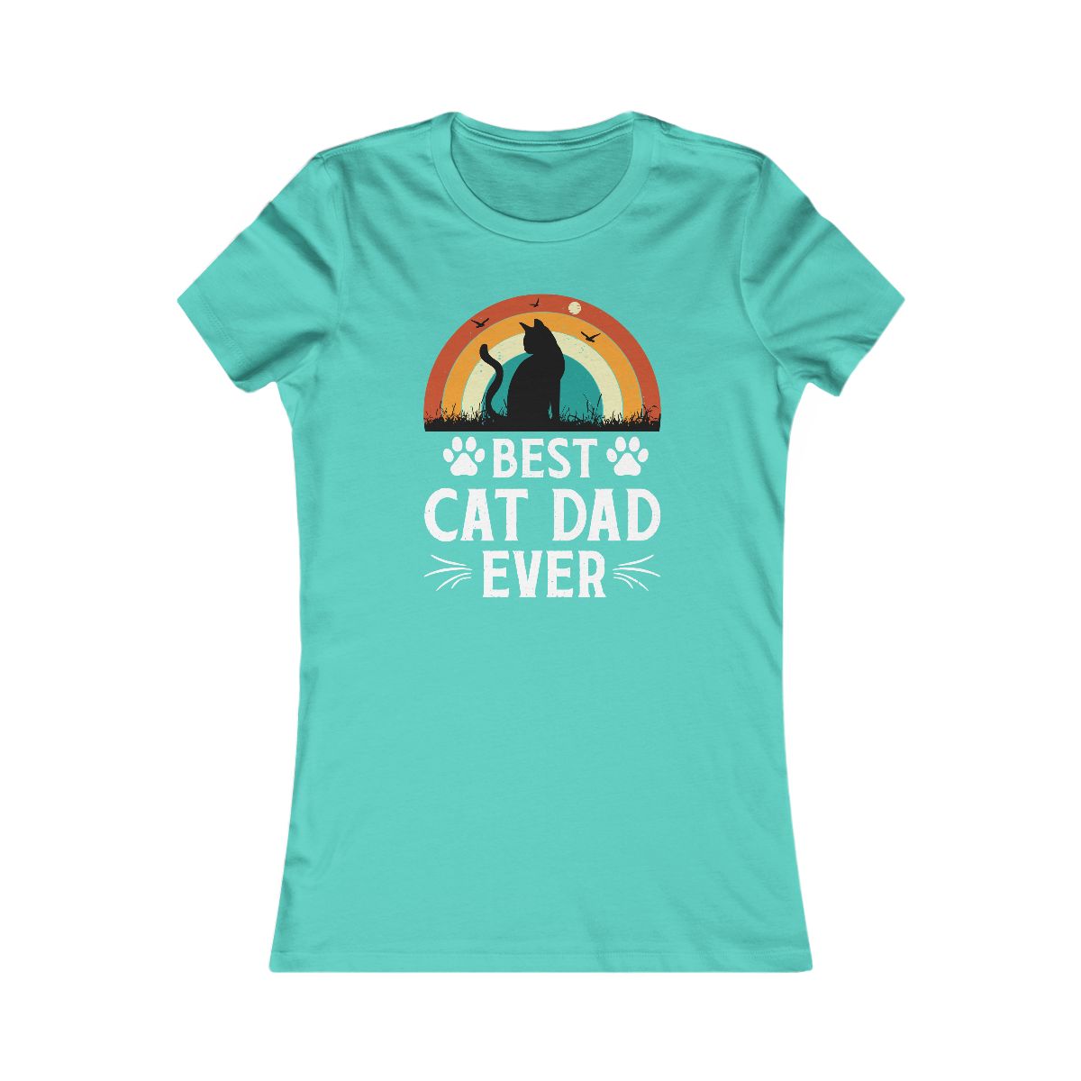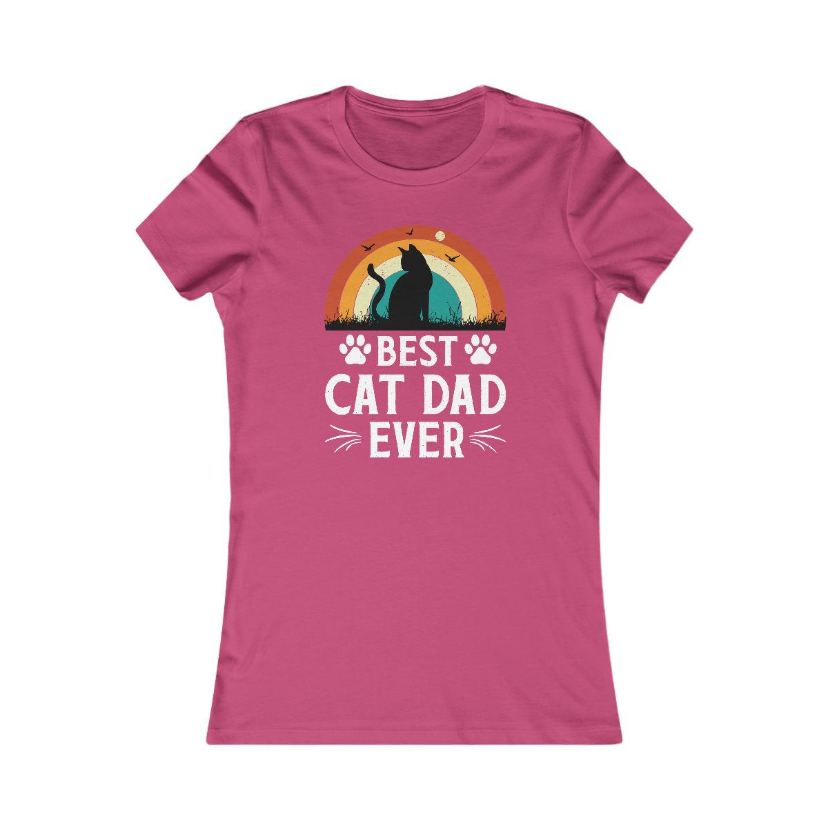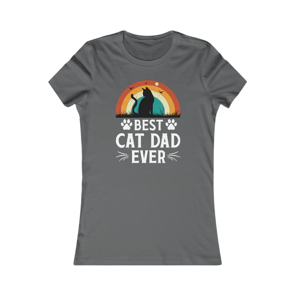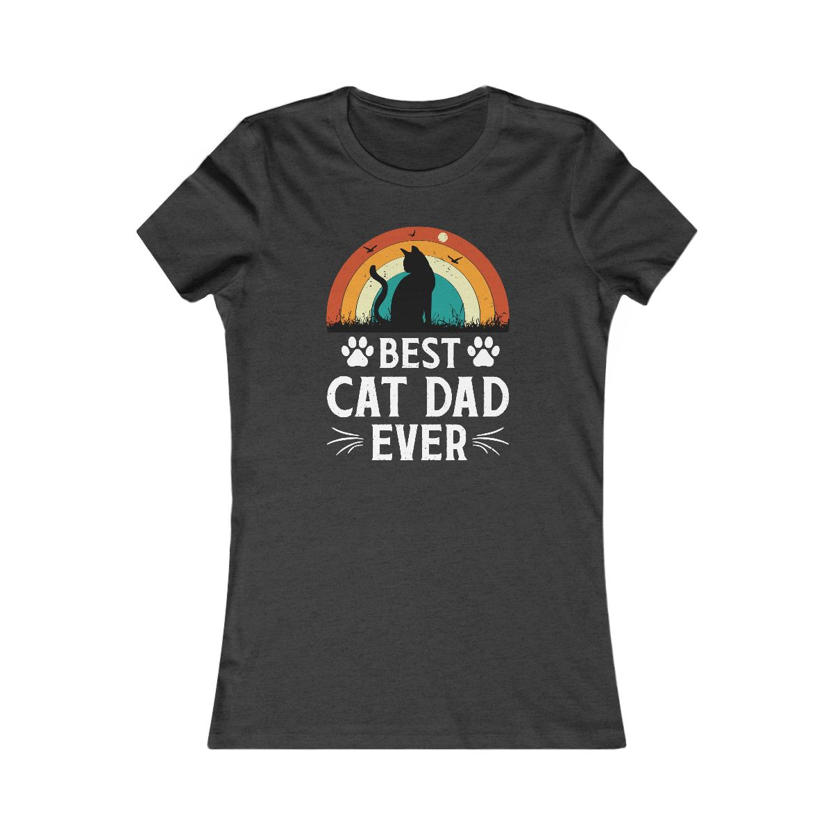 Best Cat Dad Ever” retro tee! Sunset cat silhouette. Perfect for the awesome, purr-fect feline father figure.