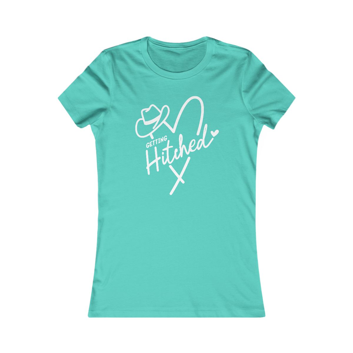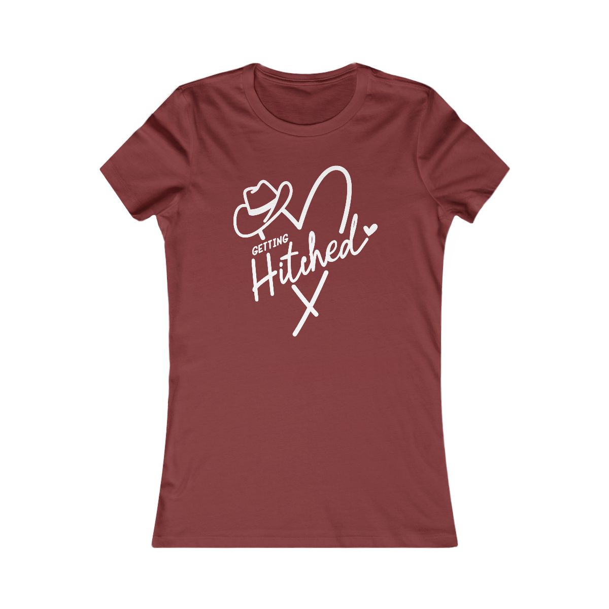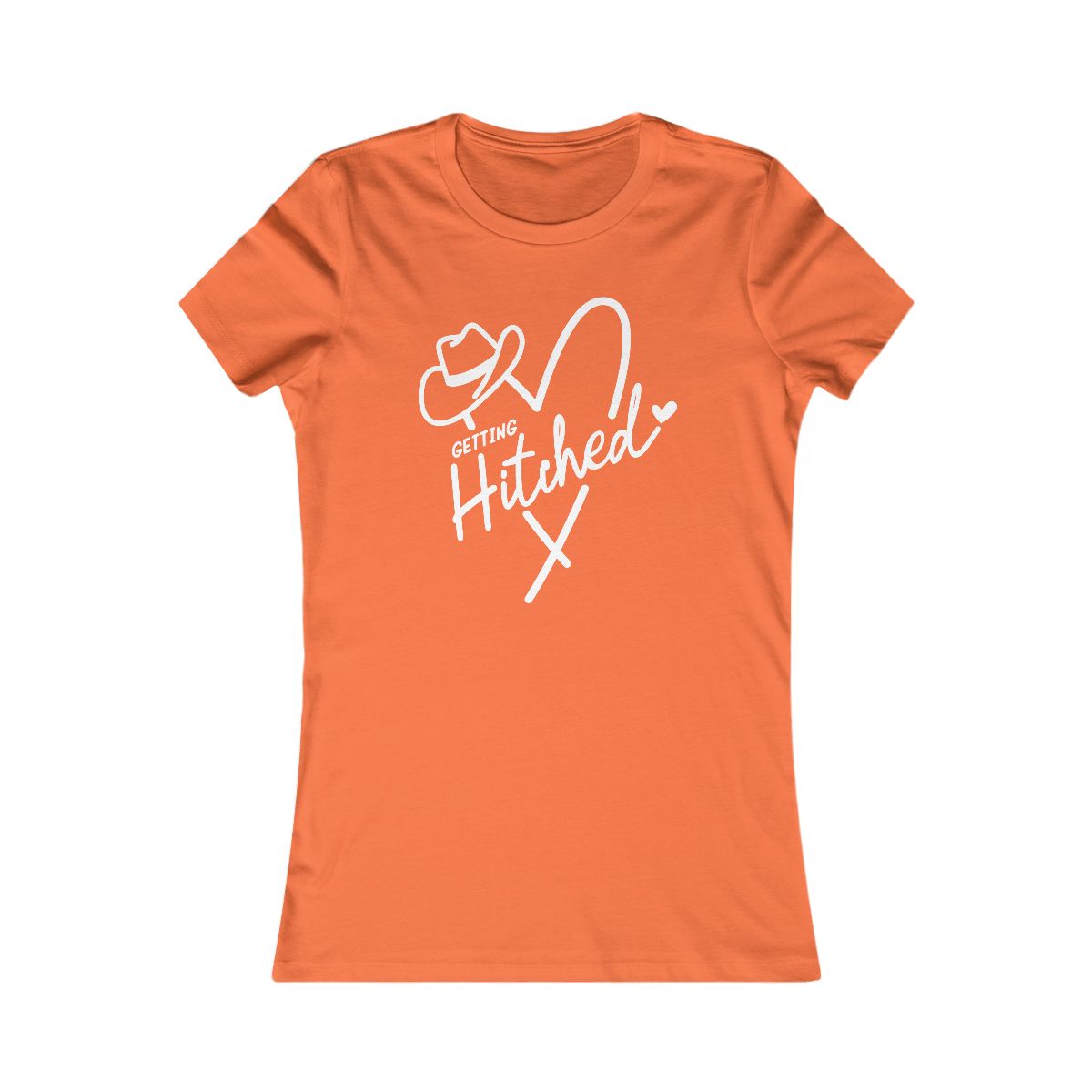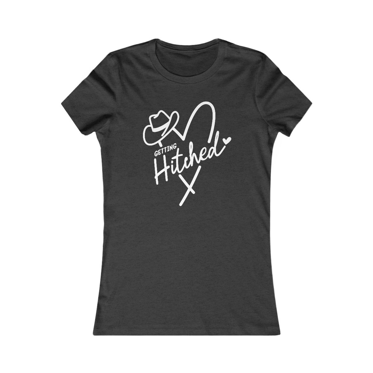 Gettin’ Hitched! Saddle up for forever, cowboy style. Perfect tee for Western weddings, bachelorettes & country love. #WesternWedding #Bride