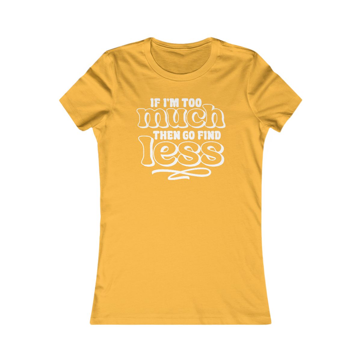 If I’m too much, go find less.” Bold statement tee for confident, witty individuals. Express your unique vibe! #TooMuch #WittyTee #SelfLove #FunnyShirt