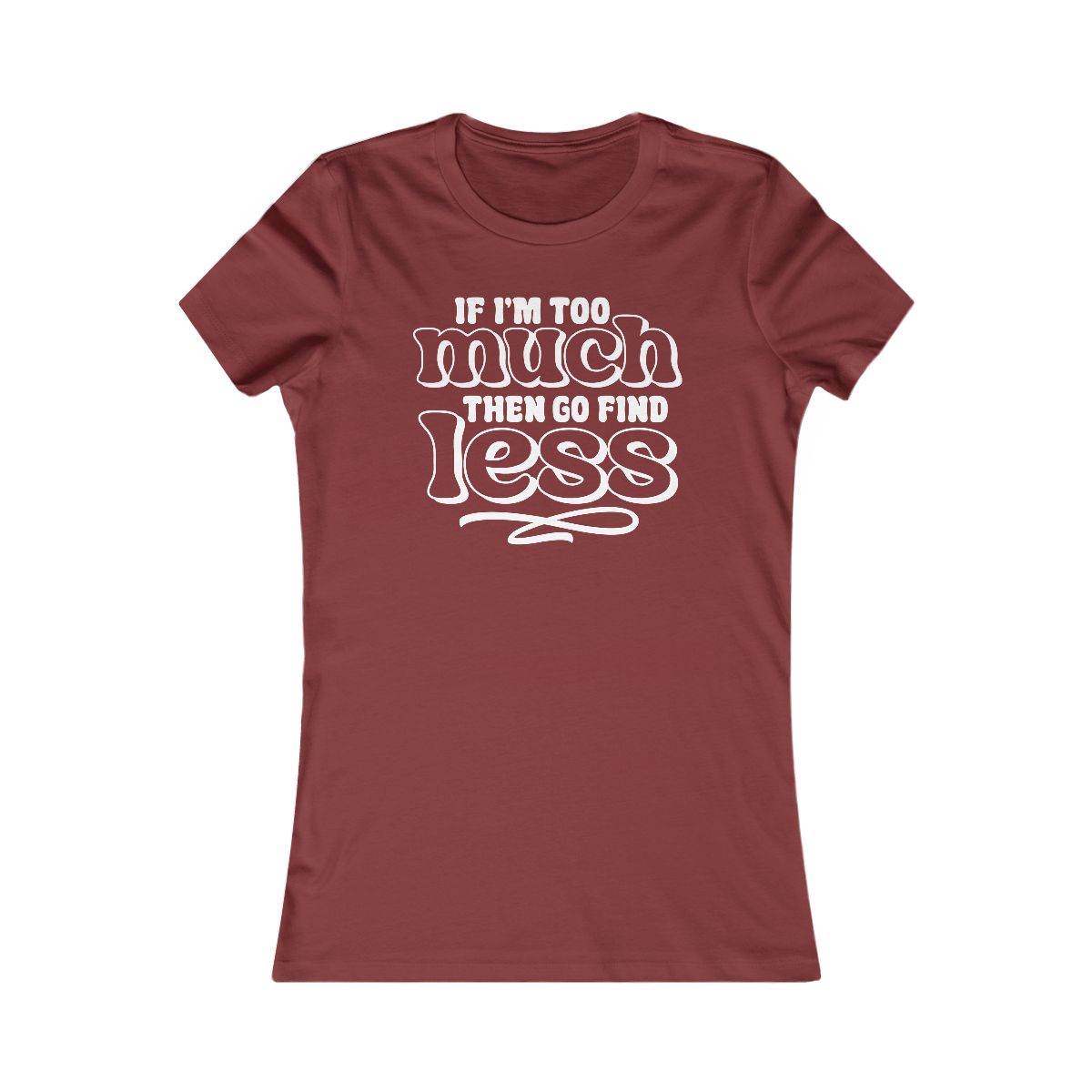If I’m too much, go find less.” Bold statement tee for confident, witty individuals. Express your unique vibe! #TooMuch #WittyTee #SelfLove #FunnyShirt