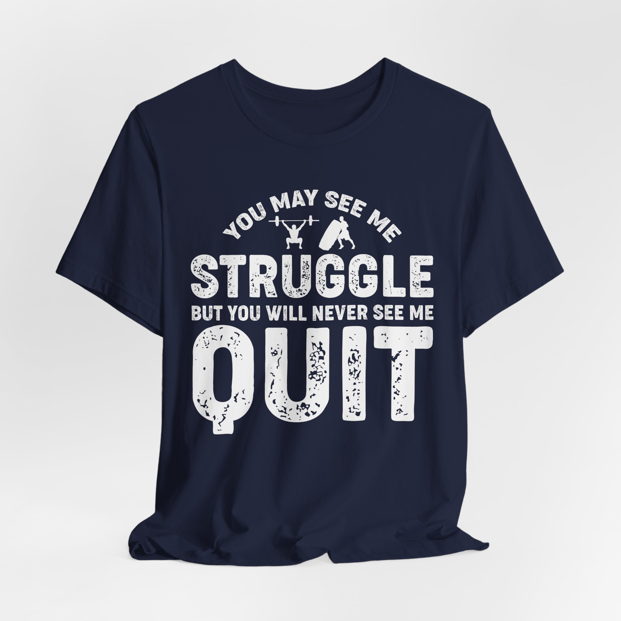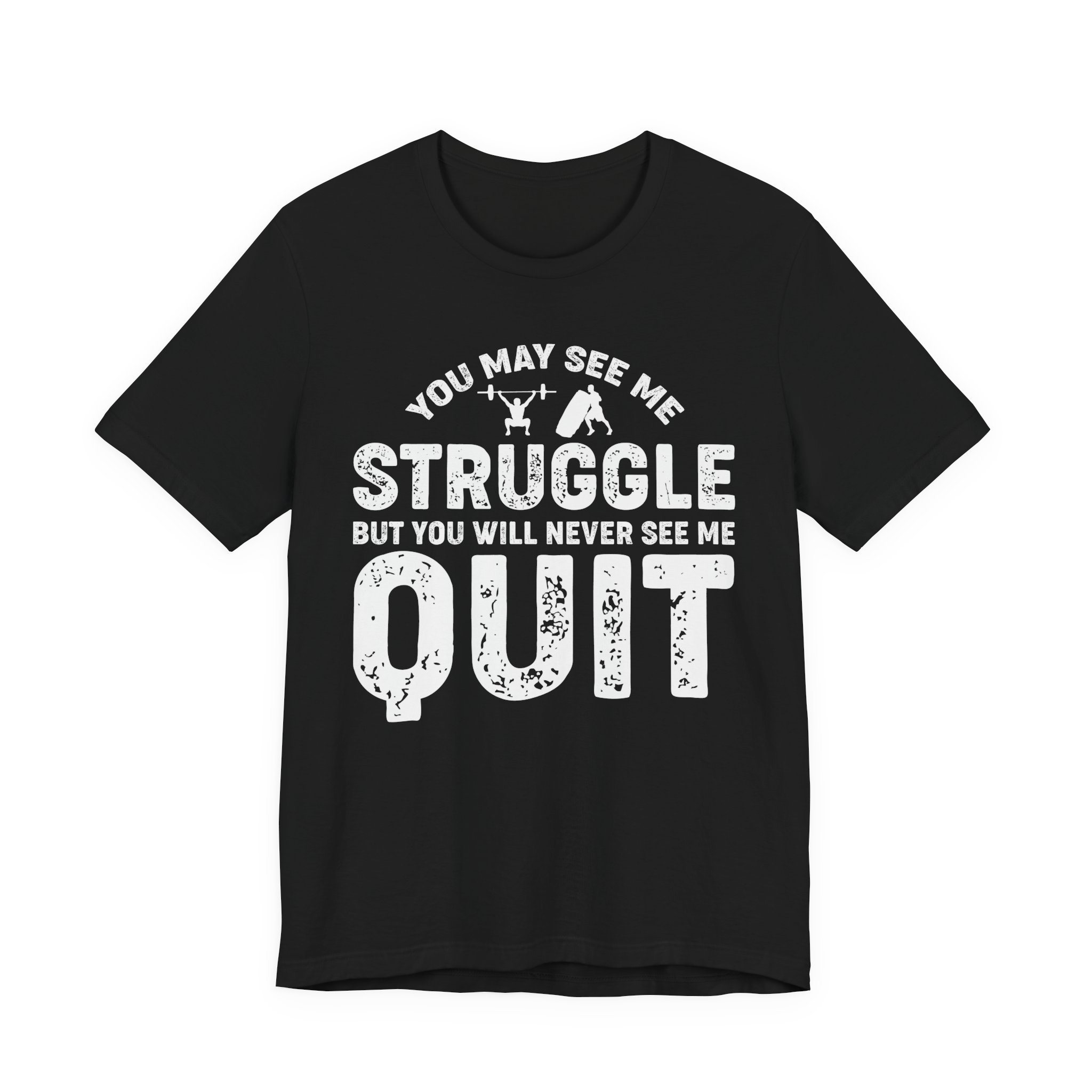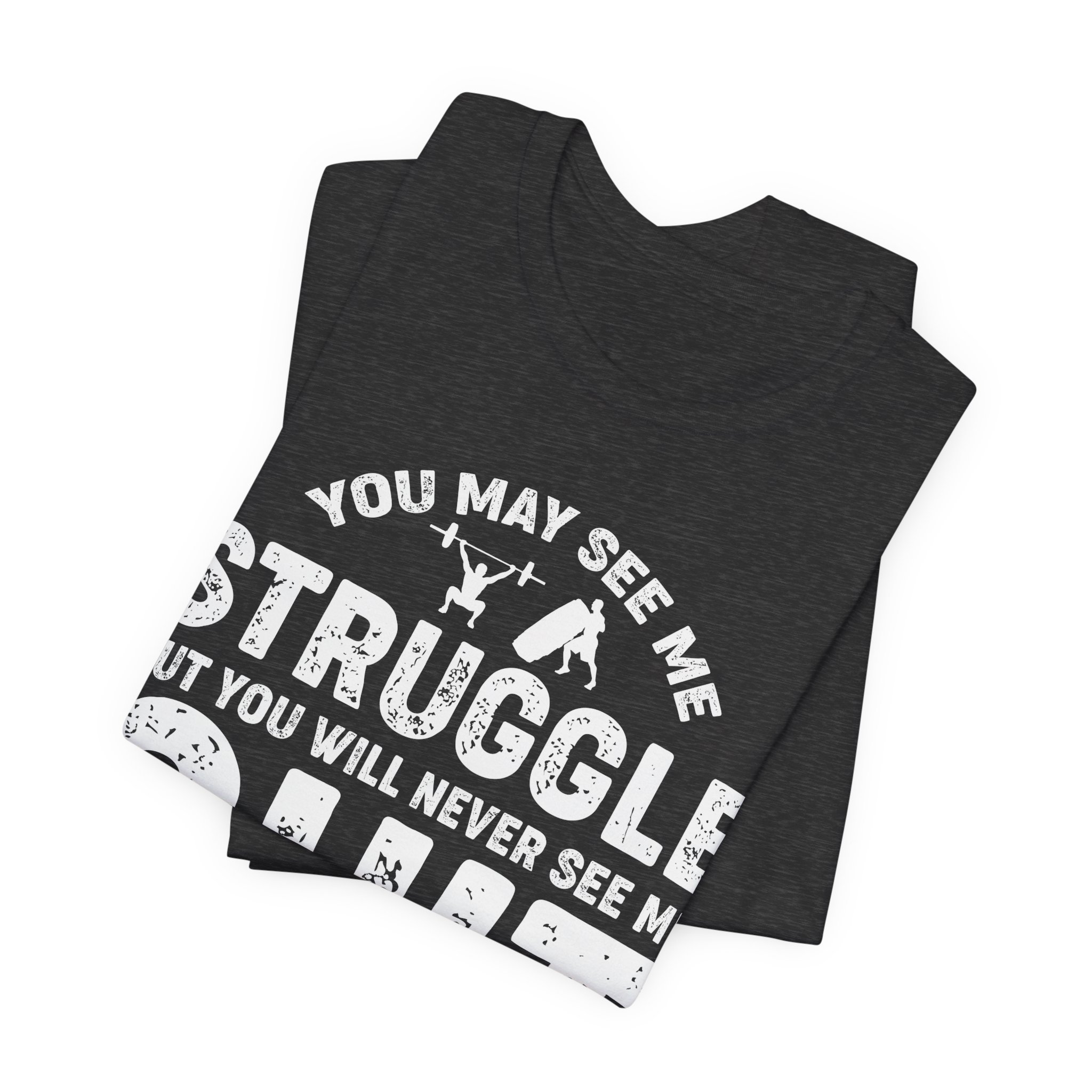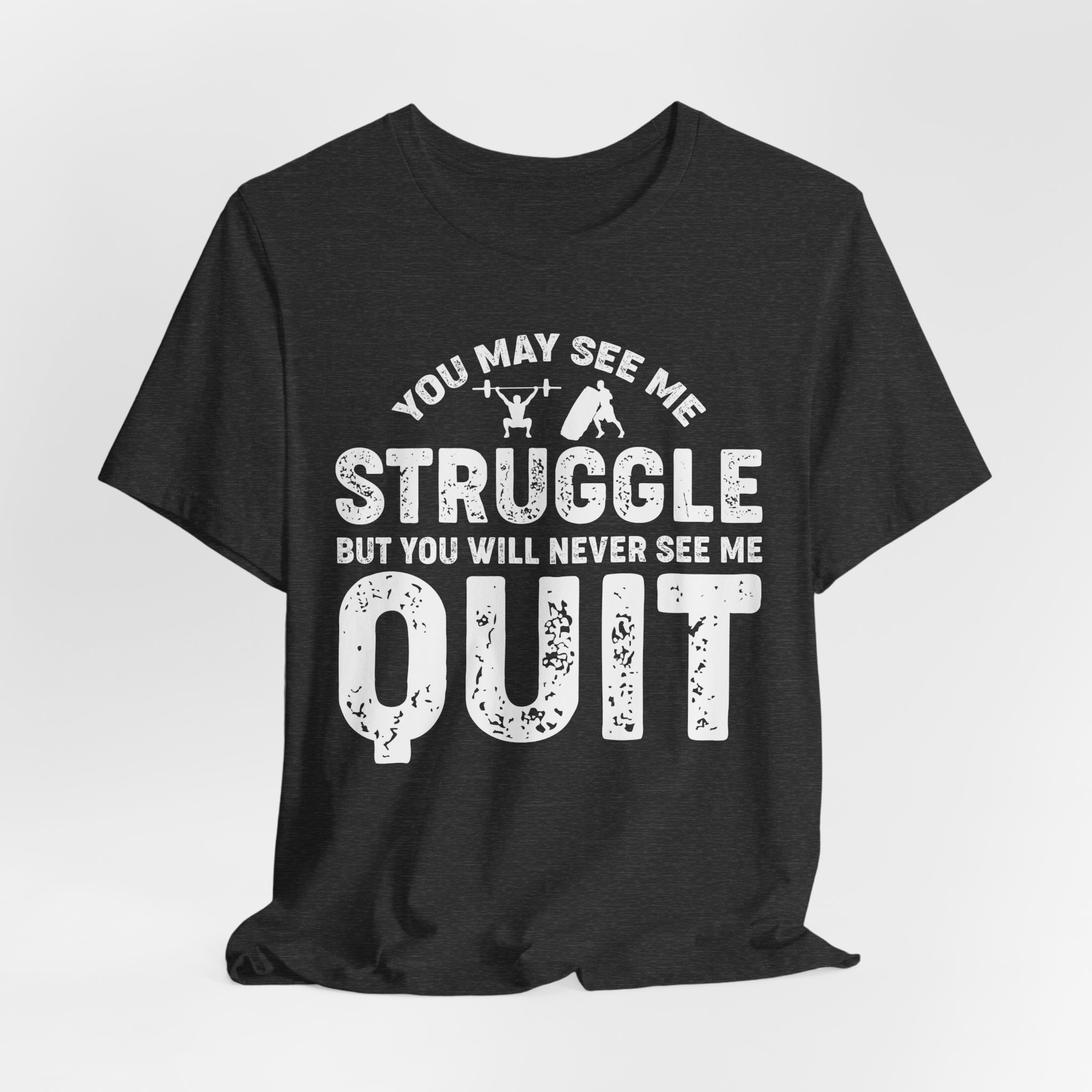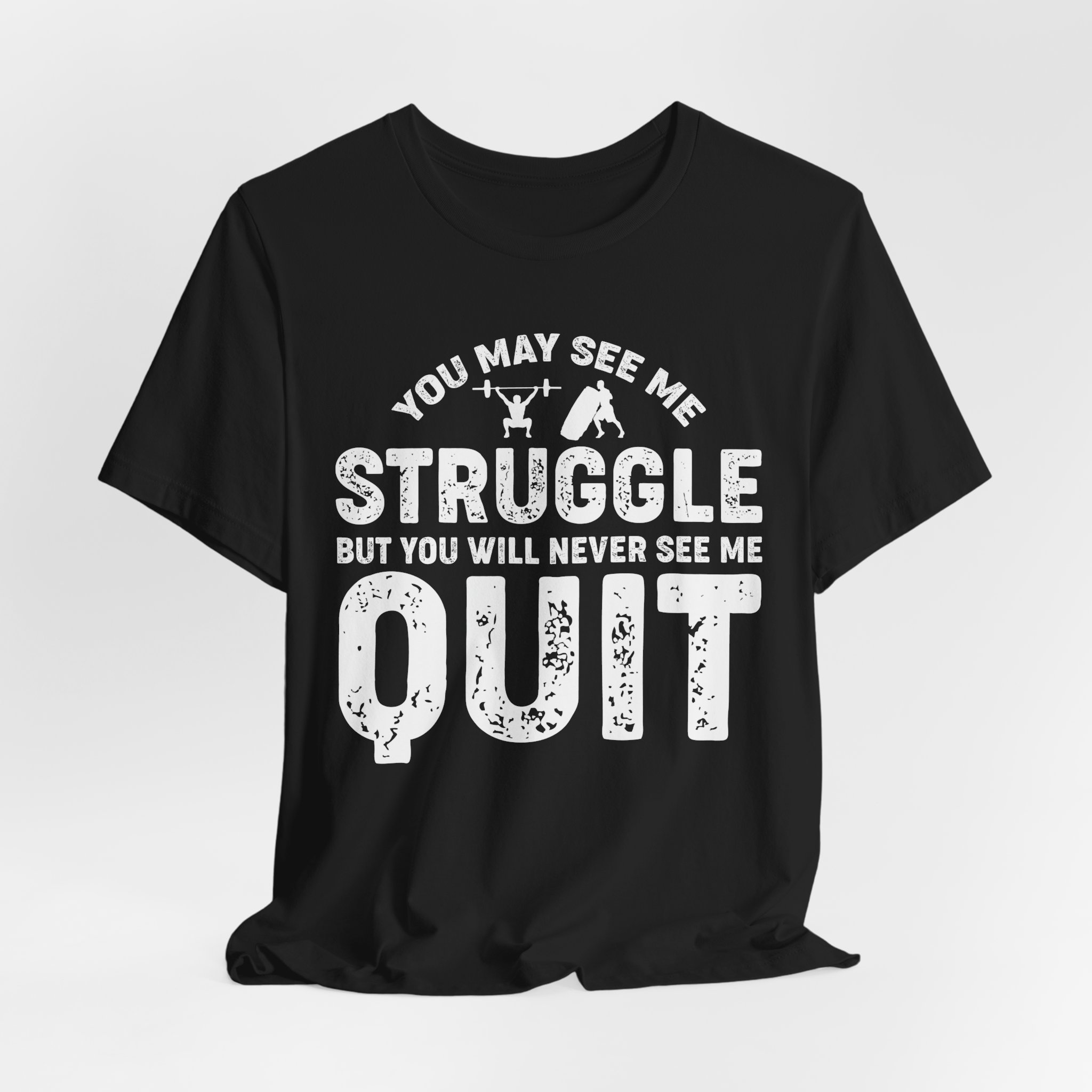 Put your game face on with our ‘You May See Me Struggle, But You Will Never See Me Quit’ T-shirt! Perfect for gym rats and couch warriors alike, this shirt proves that perseverance is the name of the game. Whether you’re lifting weights or lifting your pizza slice, show off that unstoppable spirit with a touch of humor! Wear it, sweat in it, and let everyone know that struggling is just part of your charm!